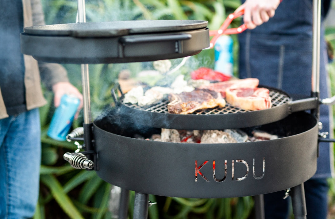 The KUDU is intentionally simplistic in its form. People sometimes think that just because a grill looks robust and has a lot of moving parts, it must be capable of complex performance, but often that’s not the case. When it comes to the KUDU, simplicity of design gives way to a larger breadth of opportunity – we’ve removed all the superfluous parts, built a solid, sturdy, straightforward product, and we’re left with a unique and innovative grill that harnesses and refines all the best aspects of cooking over an open flame. Best of all, even the most novice griller can easily enjoy the Kudu with simple heat, smoke and cooking control.